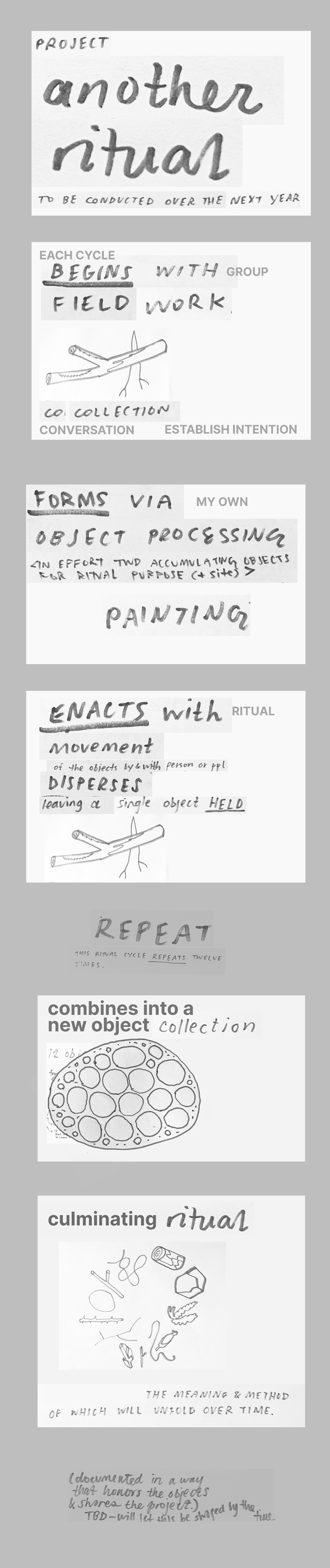 This project plays out as an ongoing invitation to take a walk, find some rocks/sticks/etc and make some meaning together in an ecosystemic way.
